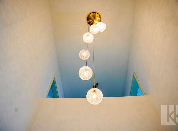 Das ausgebaute Dachgeschoss bildet eine eigene kleine Wohneinheit: Ein lichtdurchflutetes Studio mit Zugang zu einem privaten Balkon sowie ein kleines Duschbad machen diesen Bereich ideal für heranwachsende Teenager oder Gäste, die sich ein Stück Privatsphäre wünschen.