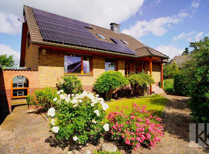 Dieses großzügige Einfamilienhaus im Landhausstil bietet mit 194 m² Wohnfläche jede Menge Platz für Familien, zwei Generationen oder Wohnen und Arbeiten unter einem Dach – ruhig gelegen und dennoch gut angebunden im beliebten Ort Osloß.
