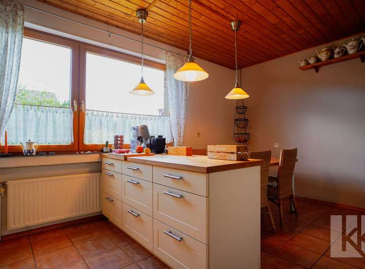 Insgesamt sechs Zimmer – darunter fünf Schlafzimmer – eröffnen vielfältige Nutzungsmöglichkeiten. Zwei voll ausgestattete Küchen sowie drei Badezimmer sorgen für Komfort, Flexibilität und die Option, das Haus bei Bedarf auch in zwei Wohnbereiche aufzuteilen.
