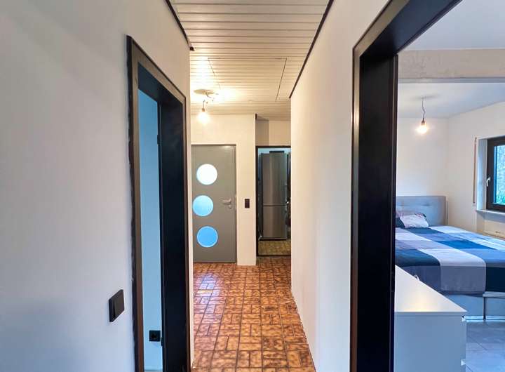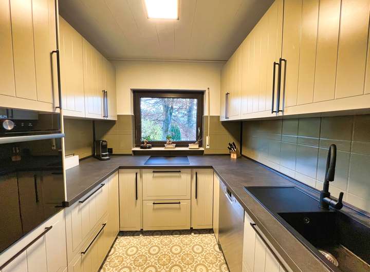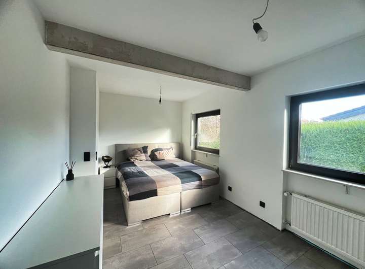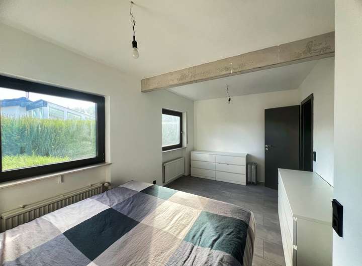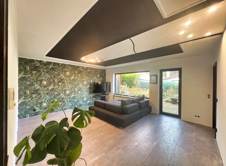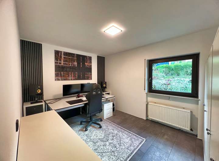 Bereits beim Betreten bietet der großzügige Flur einen Blick auf die lichtdurchfluteten Zimmer. Das Schlafzimmer überzeugt durch einen erholsamen Blick ins Grüne, während sich das zweite Zimmer ideal als ruhiges Büro oder Kinderzimmer eignet. Perfekt für das Homeoffice oder den Nachwuchs. Das große Wohnzimmer bildet das Herzstück des Hauses: Ein heller Raum mit direktem Blick in den weitläufigen Garten und direktem Zugang zur großen Terrasse. Die neue hochwertig maßangefertigte Küche mit Blick in die Bäume und neusten Luxus E-Geräten fügt sich nahtlos in das Wohnerlebnis ein. Das großzügige Grundstück und der Garten lassen keine Wünsche offen, egal ob für Hobbygärtner oder Grillmeister. Der von außen und innen zugängliche Hauswirtschaftsraum schafft Ordnung und einen perfekten Platz für Waschmaschine und alltägliches. Abgerundeten durch einen ausgebauten Dachboden, welcher viel Platz zum Verstauen oder zum Ausleben von Hobbys bietet. Zum Parken stehen neben der eigenen Einzelgarage, Parkplätze in unmittelbarer nähe zur Verfügung.