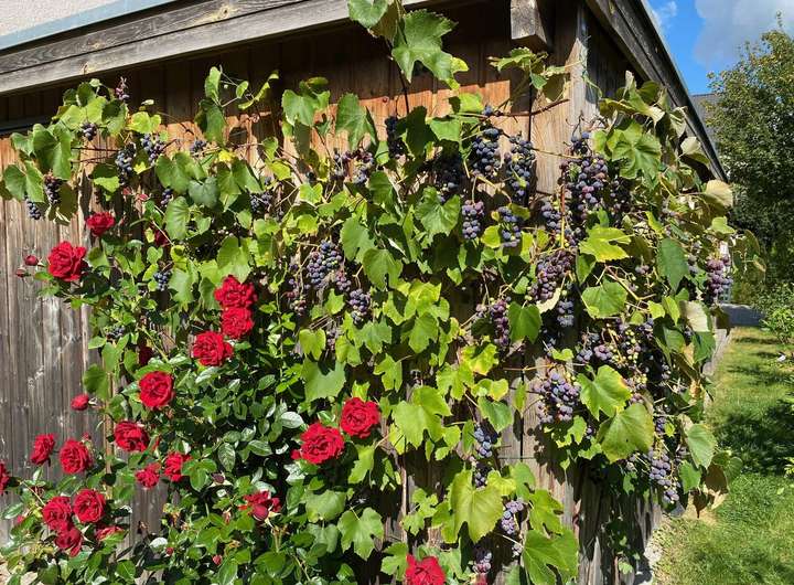* Liebevoll angelegter Garten mit edlen Rosen, Wein, Bambus und Sichtschutz