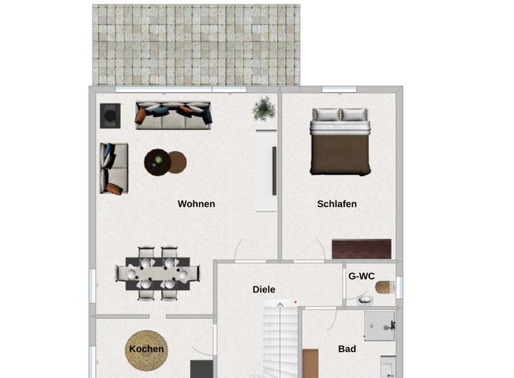 • Terrasse mit Zugang vom Wohnbereich