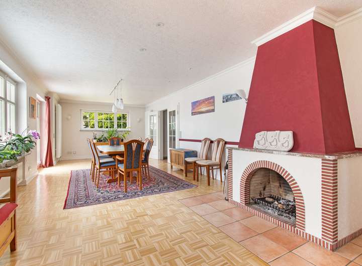 - Heller, großzügiger Wohn- und Essbereich mit Kamin