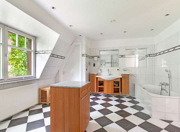 - Modern gestaltetes Vollbad mit Fußbodenheizung, Stauraumnische und hochwertiger Ausstattung