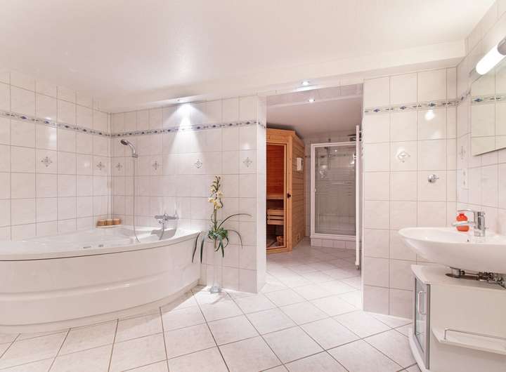 - Exklusiver Spa-Bereich mit Sauna, Dusche, Jacuzzi und Fußbodenheizung
