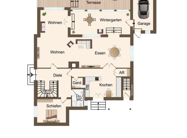 - Rund ca. 243 m² Wohnfläche plus ca. 58 m² wohnlich nutzbare Fläche im Untergeschoss