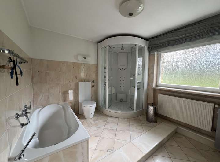Das komplett unterkellerte Untergeschoss bietet vielfältige Nutzungsmöglichkeiten: Neben den üblichen Heizungs- und Technikräumen finden sich hier ein Vorratskeller, ein großer Hobbyraum, ein Gästezimmer sowie eine geräumige Doppelgarage mit direktem Zugang zum Haus.