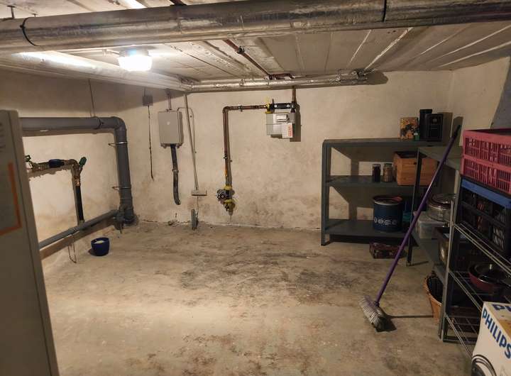 Im Keller sind die Anschlüsse für Gas und Wasser und die Gasheizungsanlage.