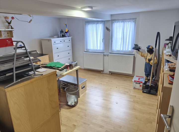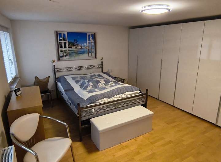 Im Schlafzimmer im ersten Stock steht neben den üblichen Möbel ein sehr großer Kleiderschrank von Hülsta. Das zweite Schlafzimmer im ersten Stock ist derzeit als Büro und Hobbyraum ausgestattet. Es gibt dort einen hochwertigen Flachbildschirmfernseher.