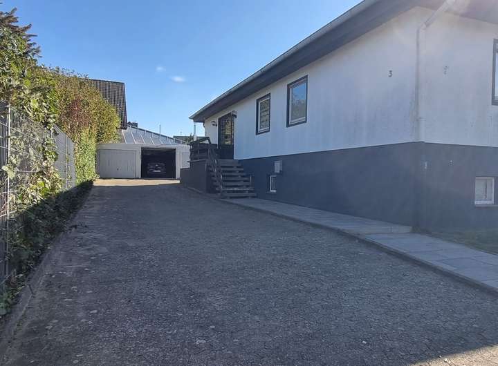 Dieser freistehende Streif-Bungalow aus dem Jahr 1976 überzeugt auf über 800qm Grundstücksfläche durch seine solide Holzständerbauweise mit sehr durchdachten 124qm Wohnfläche. Er verfügt über ein geräumiges Wohnzimmer, eine Küche mit Abstellraum und drei Schlafzimmern. Der großzügige Keller bietet mit einer Deckenhöhe von 2,45m einen Nutzbereich, welcher sich ideal für Hobbyräume, Werkstatt oder ähnliches eignet. (Ein Ausbau zur Einliegerwohnung ist denkbar) Zusätzlich zum Hauptbad und dem Gäste-WC im Wohngeschoß befindet sich ein drittes Bad im Keller. Zu den Stellplätzen in der Hofeinfahrt gibt es drei Garagenplätze.