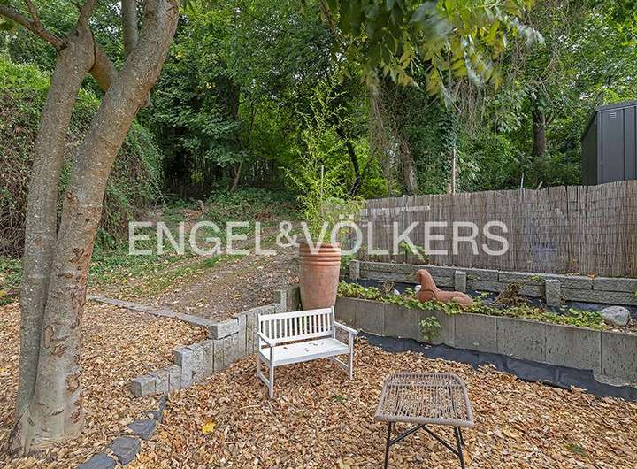 Ungefähr zwei Drittel des Gesamtgrundstücks entfallen auf den sehr ursprünglichen Naturbereich. Hier könnten Ihre Kinder einen eigenen Abenteuerspielplatz haben mit Büschen, Bäumen und einem Feldweg, der im oberen Bereich an die öffentliche Straße grenzt.