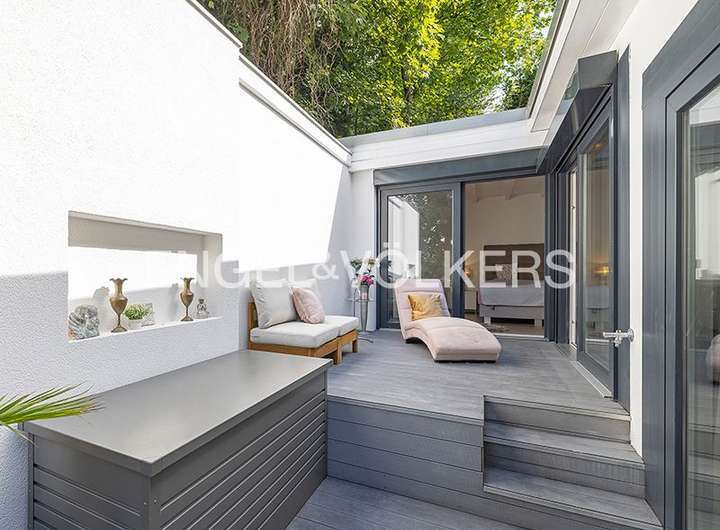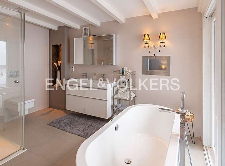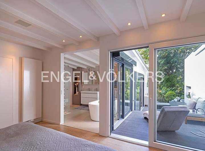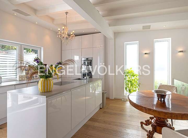Die Raumaufteilung auf zwei Ebenen mit fünf bis sechs Zimmern, offener Küche und zwei Bädern ist ideal für eine Familie mit bis zu zwei Kindern oder ein gutsituiertes Paar mit viel Platzbedarf. Eine Einliegerwohnung im unteren Geschoss mit separatem Eingang sowie auch direkter Verbindung zum Hauptwohnbereich bietet größtmögliche Flexibilität. Sie ist vielseitig nutzbar, z.B. als Kindertrakt, Homeoffice, Unterbringung einer permanenten Haushaltshilfe oder auch separat zu vermieten.