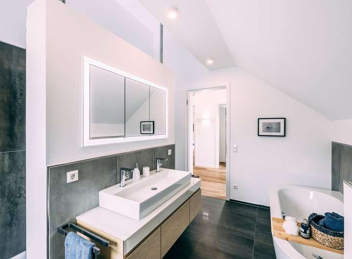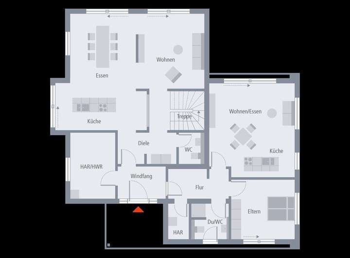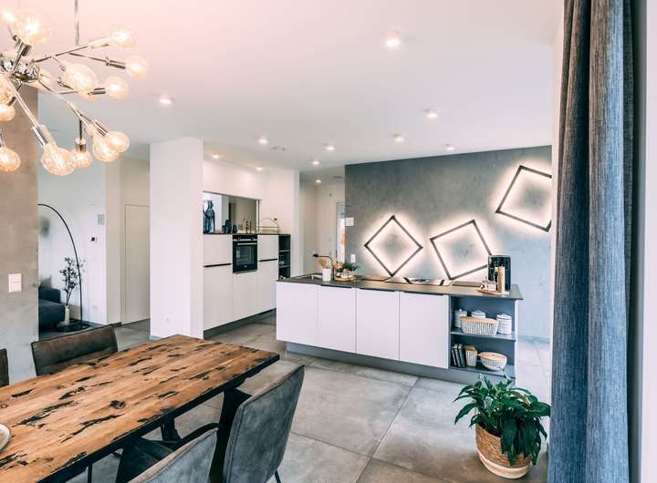 Vorausschauer und Mitdenker aufgepasst: Langenhagen bietet viele Möglichkeiten. Die versetzt angeschlossene Einliegerwohnung im Erdgeschoss lässt alle Nutzungsoptionen offen. Kommunikationszentrum im Haupthaus: der großzügige Wohn-, Koch- und Essbereich. Und auch das Obergeschoss beeindruckt durch Platz und Raumhöhe.