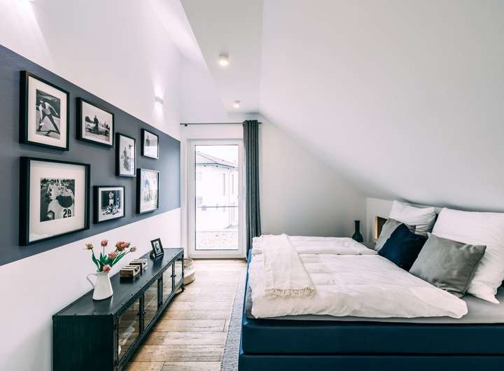 Der Studioausbau der Zimmer und Galerie erreicht eine Deckenhöhe von bis zu 3,50 m. Bei der Außengestaltung wurde die klassische Bauweise durch das verklinkerte Zwerchhaus und die rote Glasfassade gekonnt komplettiert. Und wer zieht mit ein? Sie entscheiden!