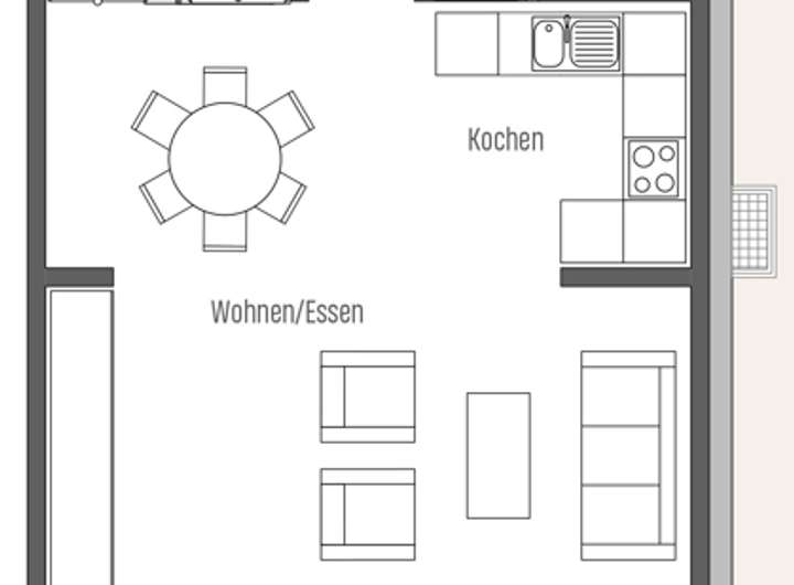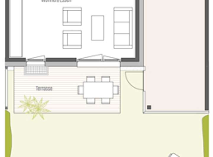 Dieses Haus bietet viele Möglichkeiten zur freien Entfaltung: mehr als 35m² Wohnfläche stehen im Erdgeschoss für Wohnen, Essen und Kochen zur Verfügung; über die Terrasse gelangen Sie in Ihren privaten, nach Süden ausgerichteten Garten.