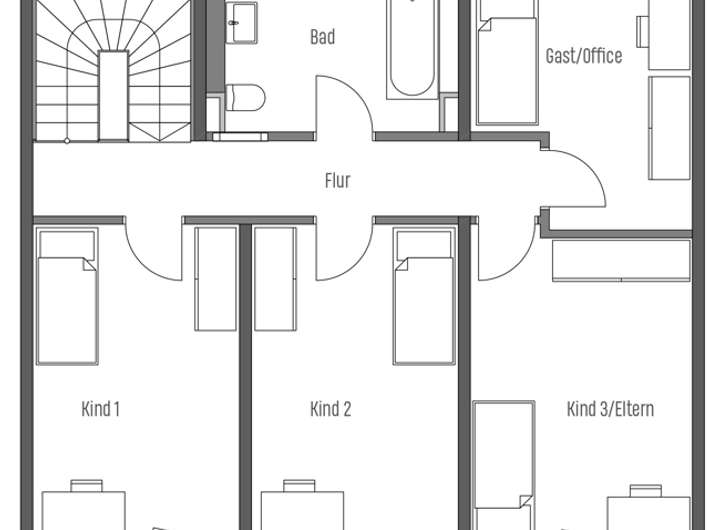 Im Obergeschoss befinden sich 4 flexibel nutzbare (Schlaf)Räume mit Wohnflächen von jeweils rund 10 bis 15 m² sowie ein großzügiges Wannenbad.