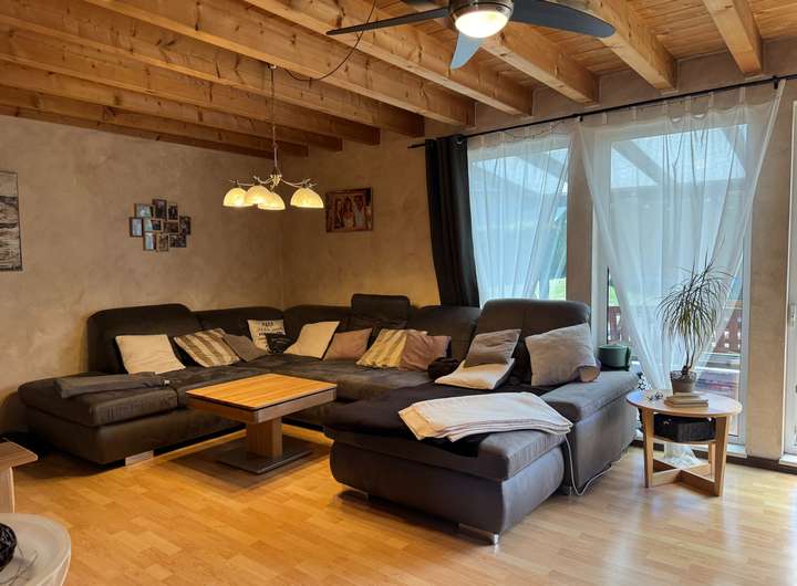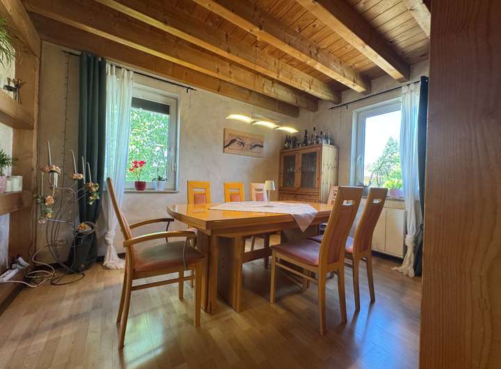 Das sehr gepflegte Einfamilienhaus in Fachwerkstil befindet sich in erhöhter Wohnlage in Spiesheim. Das Wohnhaus wurde 1991 erbaut und ist komplett unterkellert. Das sonnige Gartengrundstück inklusive neuen Gartenhaus (Baujahr 2024) ist großzügig geschnitten. Das Grundstück ist komplett eingefriedet und bietet ruhige Plätze zum verweilen ein. Die überdachte Terrasse mit Ausrichtung Süd/West ist von dem Wohnzimmer erreichbar. Die Aufteilung des Wohnhauses ist durchdacht und eignet sich für Familien. Im Erdgeschoss befinden sich ein Gäste-Duschbad,