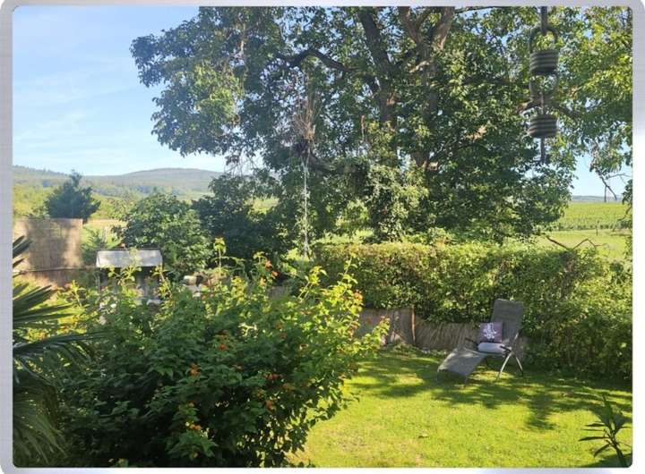 Direkt am Grundstück fließt der kleine Schwemmbach vorbei. Genießen Sie täglich die ruhige Lage und den Ausblick bis hin zur Hallgartener Zange.