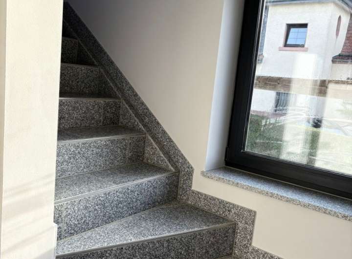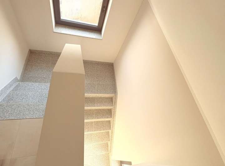 Neue Strom- und Wasserleitungen, moderne Heizkörper, frisch angelegte weiße Wände, ein gefliestes Treppenhaus und Fensterbänke aus Stein verleihen dem Haus eine wertige und langlebige Ausstattung. Die beiden modernen, komplettn neu gefliesten Tageslichtbäder im Erd- und Dachgeschoss – jeweils mit Dusche und WC – runden das stimmige Gesamtbild ab. Die neue Gastherme von Vaillant im Kellergeschoss sorgt dabei zuverlässig für Wärme und Warmwasser.
