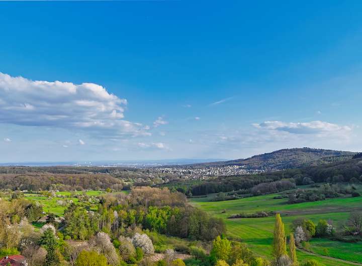 Die Höhenlage und die schöne Fernsicht in die Rhein-Main-Ebene machen Ruppertshain zu einem beliebten Wohnort.