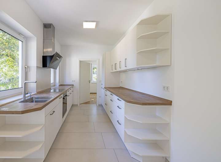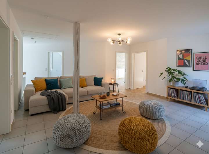 Schon beim Betreten des Hauses empfängt Sie ein großzügiger Eingangsbereich mit separater Garderobe. Der lichtdurchflutete Wohnraum öffnet sich zum Garten hin und begeistert durch seine Weitläufigkeit viel Platz zum Leben und Entspannen. Die moderne Küche ist harmonisch in das Erdgeschoss integriert und bildet mit dem angrenzenden Essbereich einen stilvollen Rahmen – praktisch im Alltag, großzügig genug für viele Gäste. Ein stilvolles Gäste-WC sowie ein weiteres, flexibel nutzbares Zimmer – ideal als Arbeitsbereich, gemütlicher TV-Raum oder privater Rückzugsort – runden die Wohnebene ab.