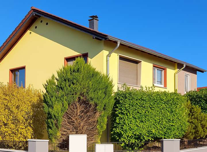 Zur Erholung und zum Genießen im Freien stehen eine große, im Jahr 2020 angelegte Terrasse im Erdgeschoss sowie ein 2024 frisch abgedichteter und neu gefliester Balkon im Obergeschoss zur Verfügung. Die Außenanlagen sind durch einen neu gepflasterten Hof (2020), eine vollständig erneuerte Einfriedungsmauer mit Geländer (2025) und einen barrierearmen Zugang mit Rampe (2022) auf aktuellem Stand.