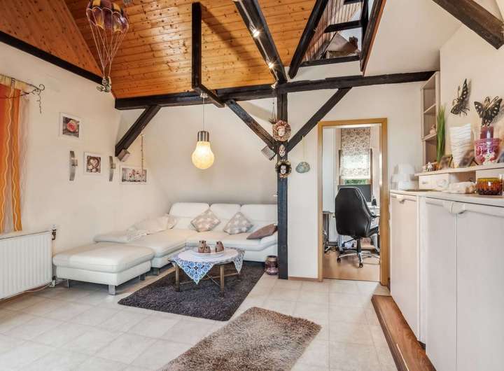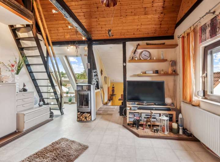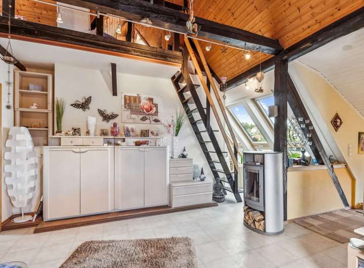 Über eine geschlossene Holztreppe gelangen Sie in das ausgebaute Dachgeschoss.