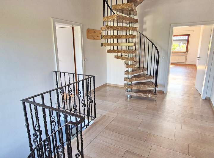 Die Maisonettewohnung im Erd- und Untergeschoss kann problemlos mit der Dachgeschosswohnung verbunden werden eine bereits vorhandene Wendeltreppe im Erdgeschoss macht dies möglich. Die bestehende Trennwand kann bei Bedarf entfernt werden, sodass eine großzügige Wohneinheit über drei Ebenen entsteht.