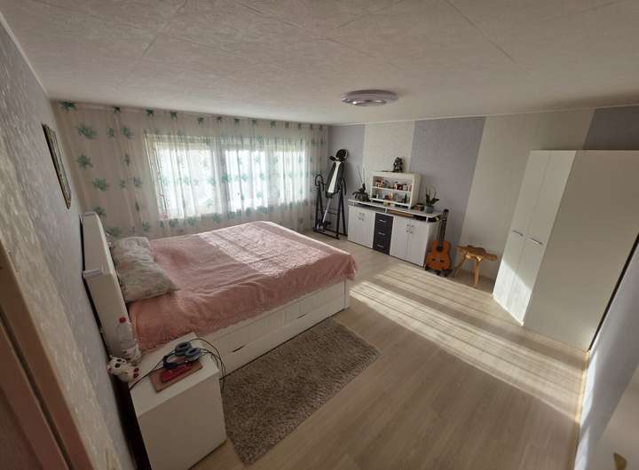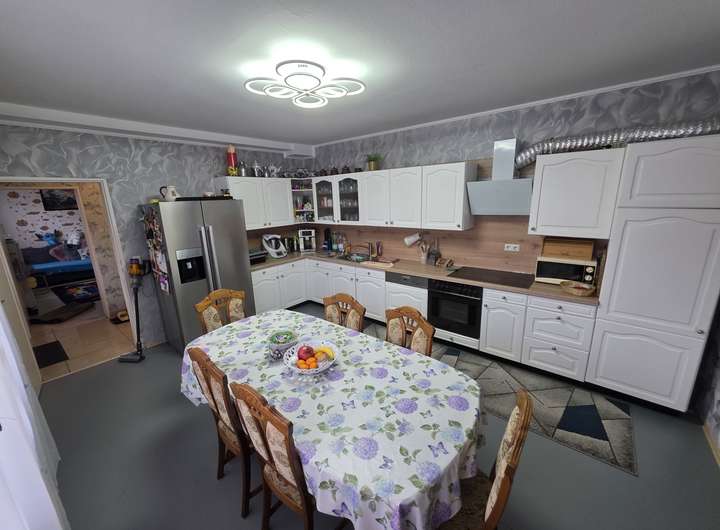 mit ca. 60m² 1 Schlafzimmer, Bad, Küche und Wohnzimmer. Haus ist in normaler Ausstattungsqualität gehalten und bietet viel Potenzial für individuelle Gestaltung. . Die Immobilie ist nicht vermietet und steht zur Eigennutzung bereit. Zudem ist eine Doppelgarage und eine Garage mit eine Montagegrube für Autos vorhanden. Sowie eine große Scheuene.