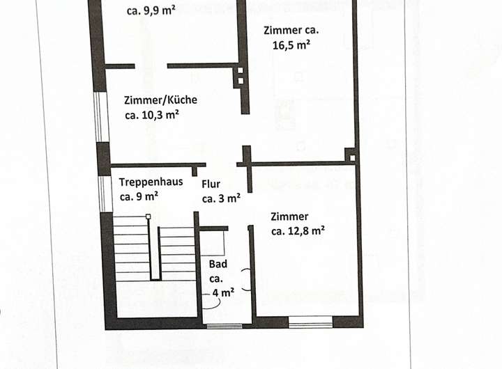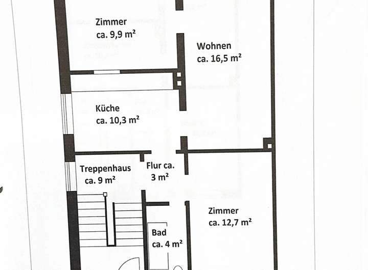 Das Objekt teilt sich auf in zwei Wohnungen mit drei Zimmern und einer Einzimmer- Dachgeschosswohnung.
