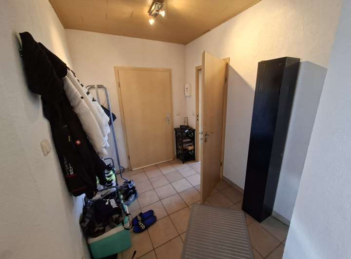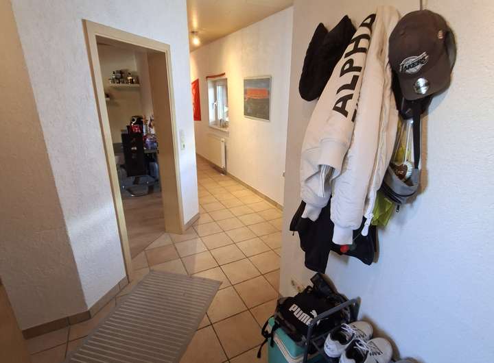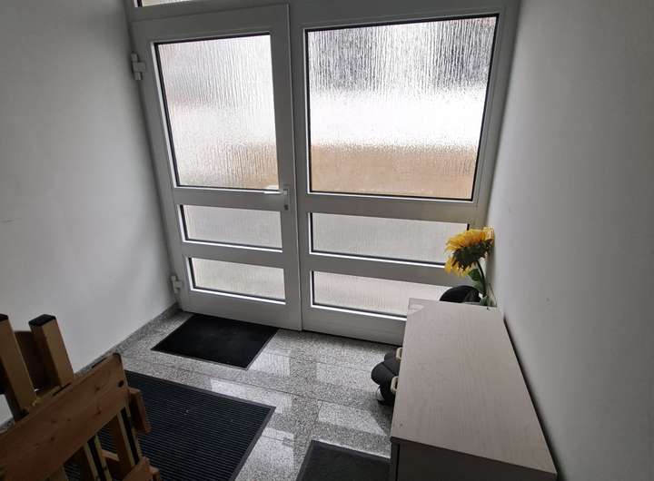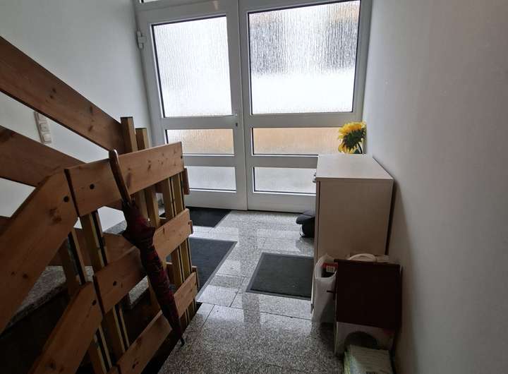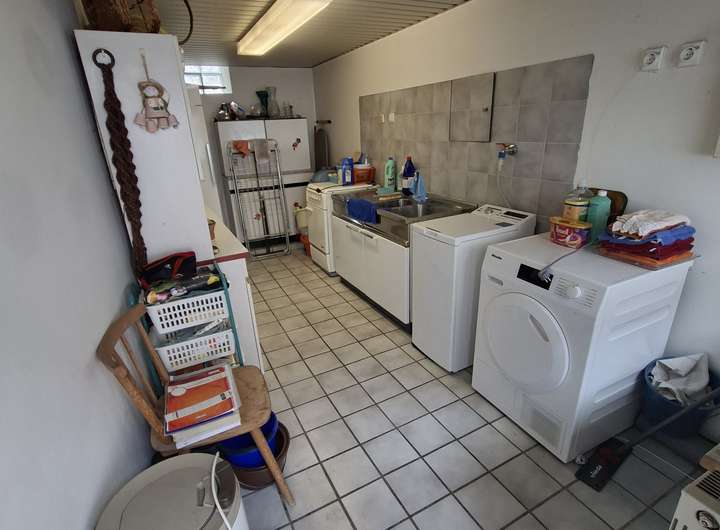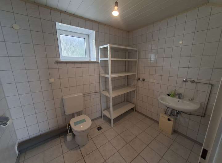 Bei dem Anbau der Scheue ist nochmal ein extra Seiteneingang zum Treppenhaus uns Zugang zur Waschküche.