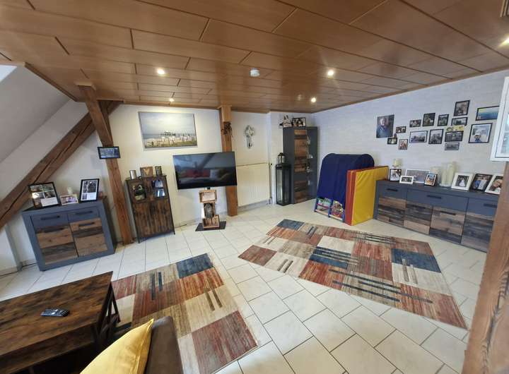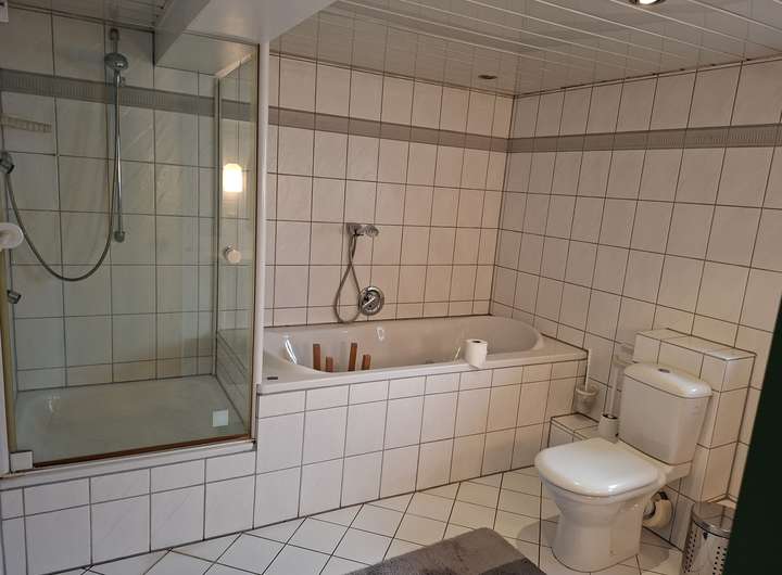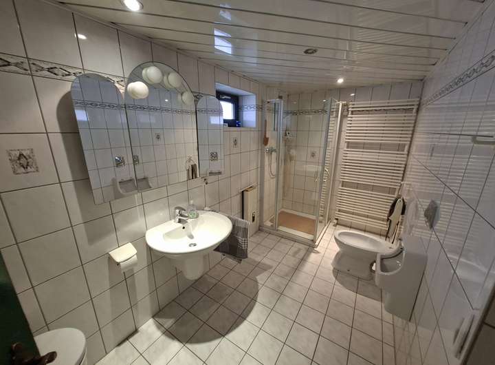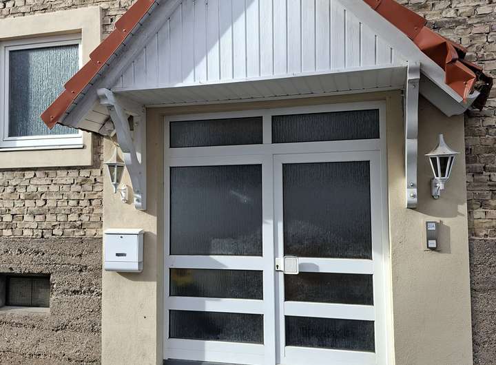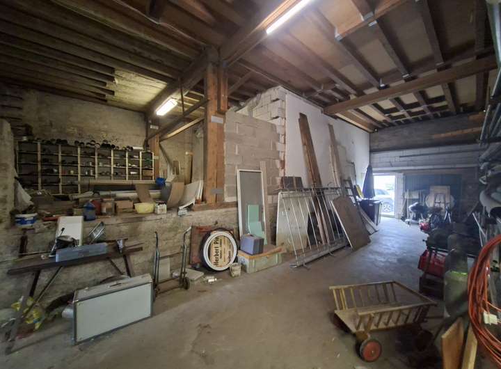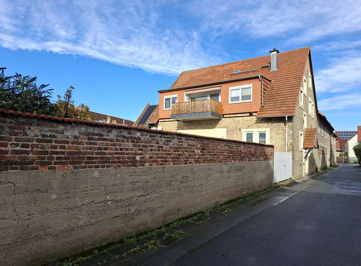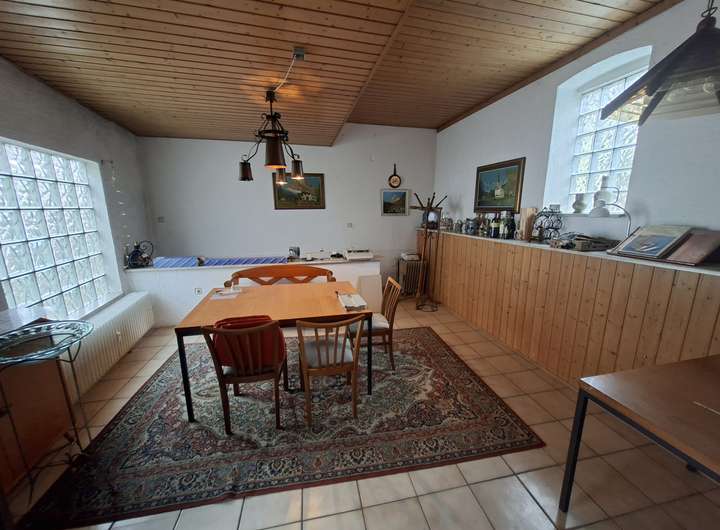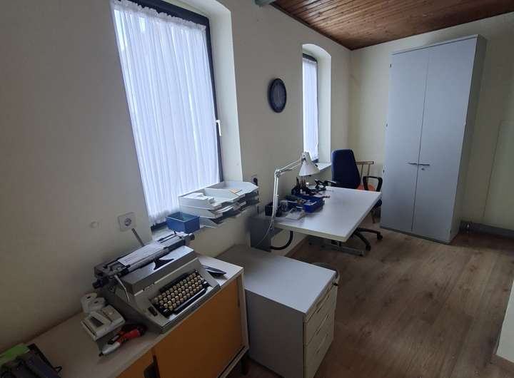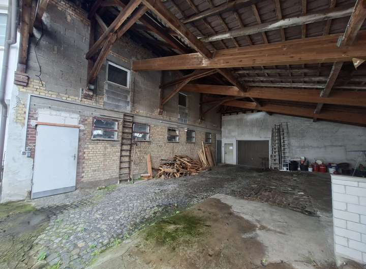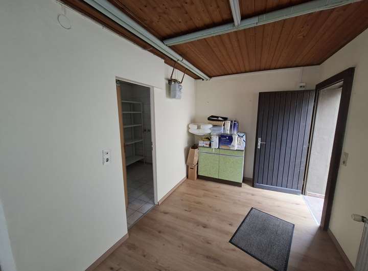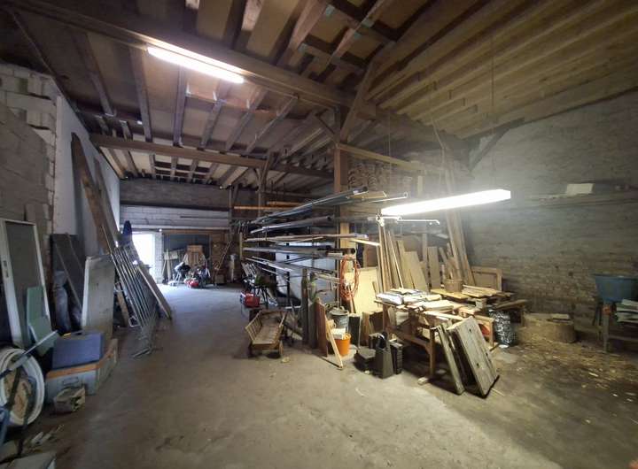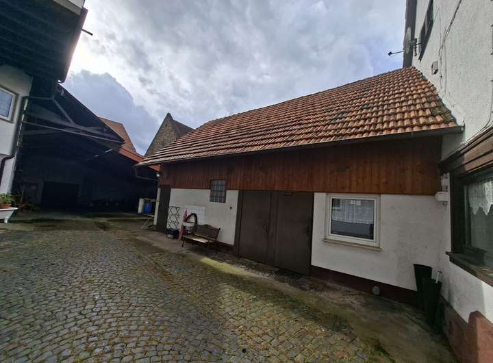 In dem Großen Nebengebäude befindet sich 2 Büros, großes Lager und das Treppenhaus zu den zwei Mietwohnungen eine mit ca. 90 m² und eine mit ca. 60 m². Die Wohnungen sind in den Jahren 2020-2022 entstanden bzw. ausgebaut worden. Extraseiteneingang in der Nebenstraße. Im Hof und hinter der Scheune sind insgesamt ca. 8 PKW-Stellplätze vorhanden.