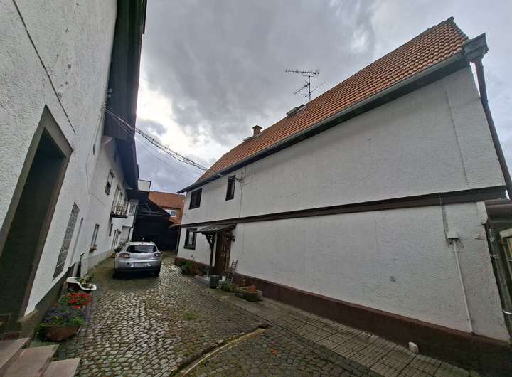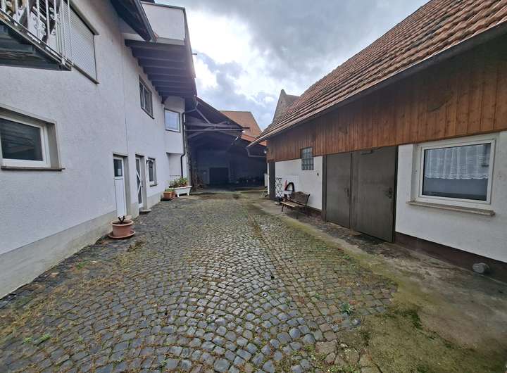 Großes Anwesen mit Denkmalgeschütztes Vorderhaus. Sehr großes Nebengebäude mit mehreren Büros, Lagenräumen und in der Mitte zwei Wohnungen die Vermietet sind. Scheune mit Anbau in dem eine sehr schöne 5 Zimmerwohnung mit Balkon von 1990-1994 neu erstellt worden ist.