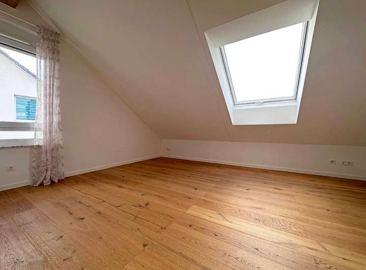 Das Dachgeschoss bietet zwei weitere Zimmer, die sich flexibel als Kinder-, Gäste- oder Arbeitszimmer nutzen lassen. Eine Abstellkammer und vorbereitete Anschlüsse für ein weiteres Bad bieten zusätzlichen Komfort.