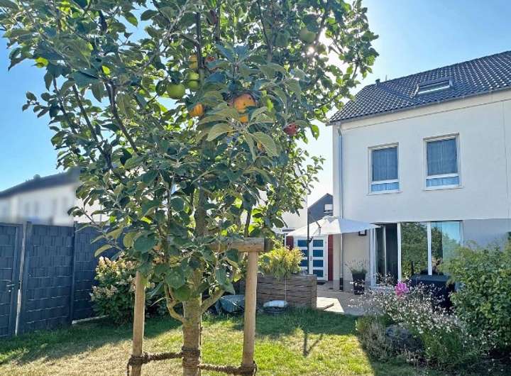 Diese Doppelhaushälfte aus dem Jahr 2020 bietet auf rund 140 m² Wohnfläche, verteilt auf drei Etagen, viel Platz für die ganze Familie. Das Haus erfüllt den KfW 55-Standard und vereint energieeffizientes Wohnen mit einem offenen, familienfreundlichen Raumkonzept. Ruhig am Feldrand gelegen, genießen Sie hier Natur, Erholung und ungestörte Momente im eigenen Garten.
