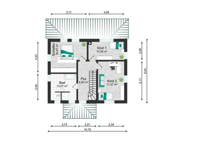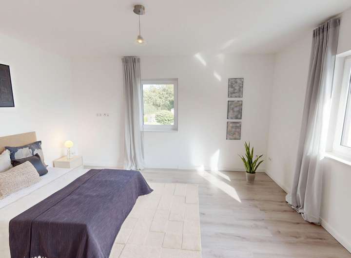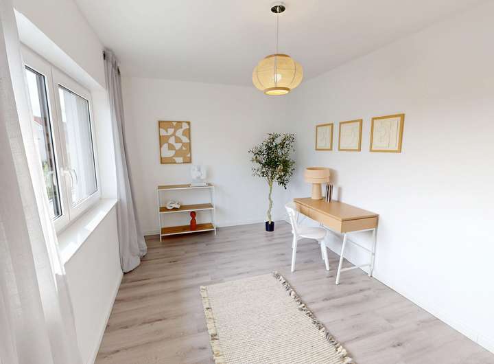 Insgesamt stehen Ihnen 5 Zimmer zur Verfügung, die flexibel genutzt werden können: als Schlafzimmer, Kinderzimmer, Homeoffice oder Gästezimmer – ganz nach Ihren Bedürfnissen. Zwei moderne Badezimmer runden das Raumangebot ab: ein praktisches Duschbad sowie ein großzügiges Familienbad mit Wanne und Dusche.