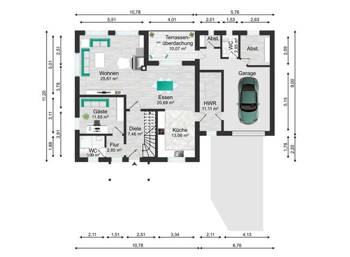 Die Villa ist massiv gebaut und überzeugt durch eine hochwertige, nachhaltige Bauweise, die modernes Wohnen mit langfristigem Werterhalt verbindet.