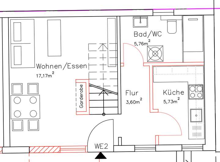 - Bad und WC mit Fliesen nach Kundenwunsch.