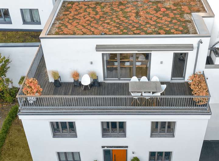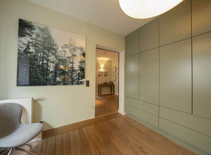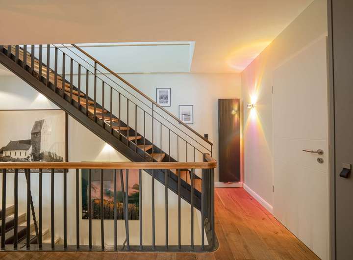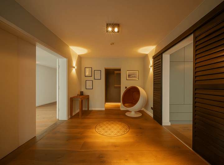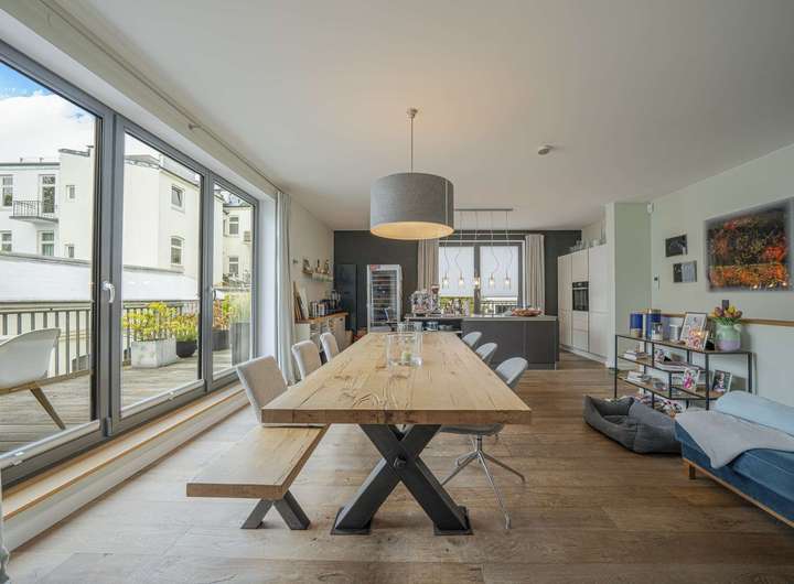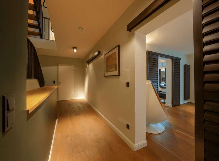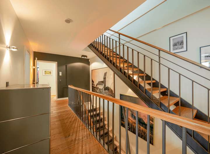 Auf ca. 287 m2 verteilen sich sieben Zimmer, darunter drei Schlafzimmer und 2 Bäder zzgl. Gäste WC. Die luxuriöse Immobilie von 2016 bietet einen warmen, gemütlichen Stil mit rustikalen und zugleich loftartigen Akzenten – ideal für Familien oder Mehrgenerationenwohnen. Ein Stil, der nicht aufdringlich ist und sofort Zuhause ankommen lässt.