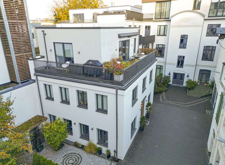 Im ruhigen Innenhof verbirgt sich ein außergewöhnliches Townhouse, das sowohl Großzügigkeit ausstrahlt, als auch Funktionalität für verschiedene Konstellationen.