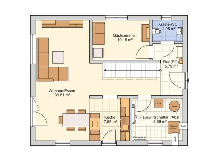 bietet es viel Kopffreiheit und ist trotz kompakter Außenmaße ein echtes Raumwunder. Ideal für schmale Grundstücke. Für junge Familien besonders interessant: Zwei