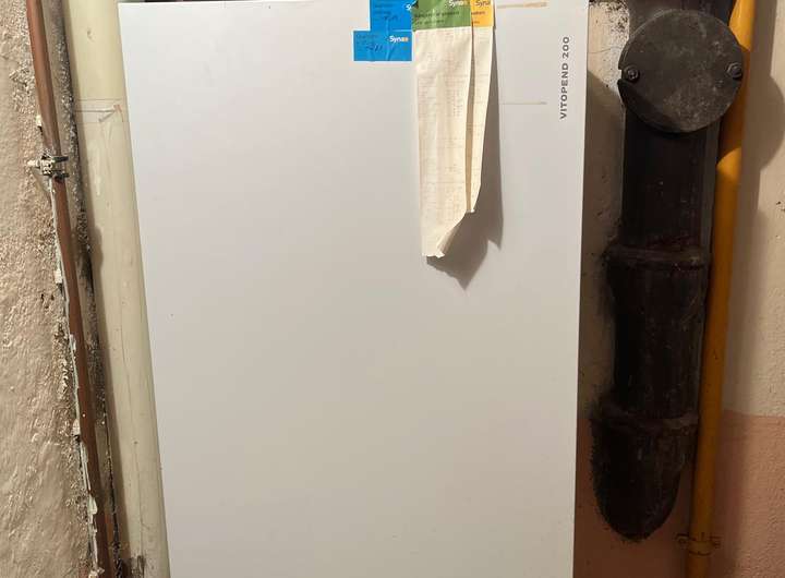 Geheizt wird über eine ca. 30 Jahre alte Viessmann Gas-Therme.