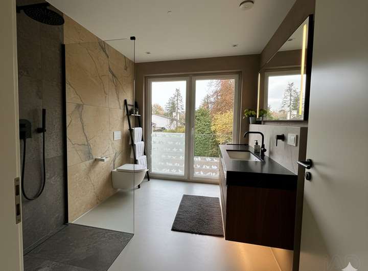 - Großzügige Fensterflächen, dreifach verglaste Elemente, - hochwertige Parkettböden und Fußbodenheizung.