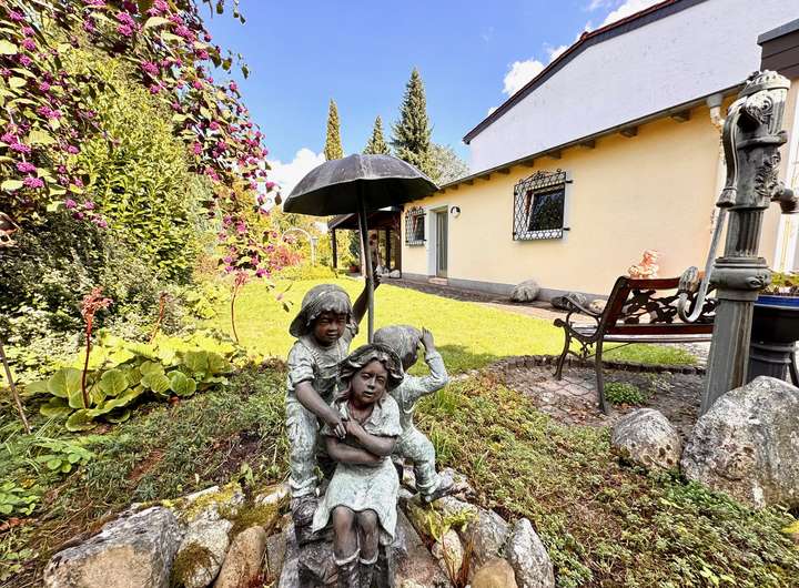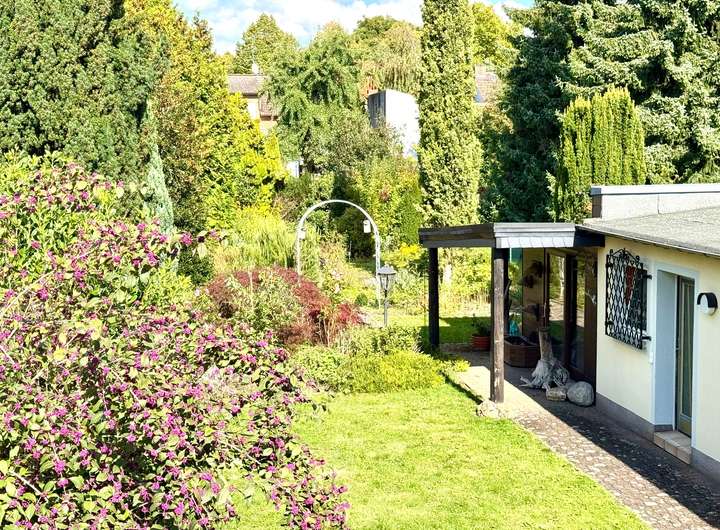 An die Terrasse angeschlossen ist der große und sonnenverwöhnte, sehr schön angelegte Garten. Kombiniert mit den zwei Nutzräumen und der überdachten Sitzecke hinter der Garage bieten sich hier viele Möglichkeiten Hobby und Freizeit qualitativ hochwertig zu gestalten.