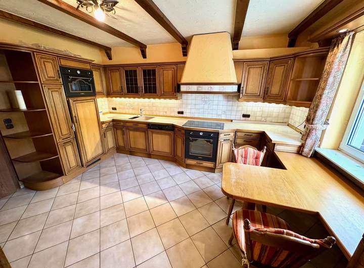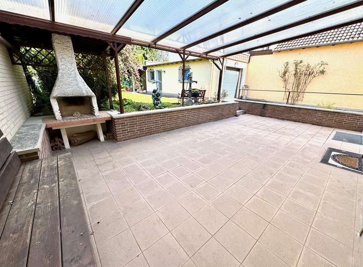 Der großzügige Anbau ist 1981, angrenzend an das Vorderhaus gebaut worden. Es ist voll unterkellert und verfügt mit seinen 124 qm Wohnfläche und der modernen Raumaufteilung über ein großes, helles Wohnzimmer inkl. wunderschönem Holzkaminofen, eine großzügige Küche und ein praktisches Duschbad. Vom Wohnzimmer kommt man auf eine große 30 qm Terrasse, welche überdacht ist und über eine schicke gemauerte Grillecke verfügt.