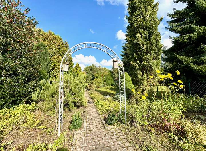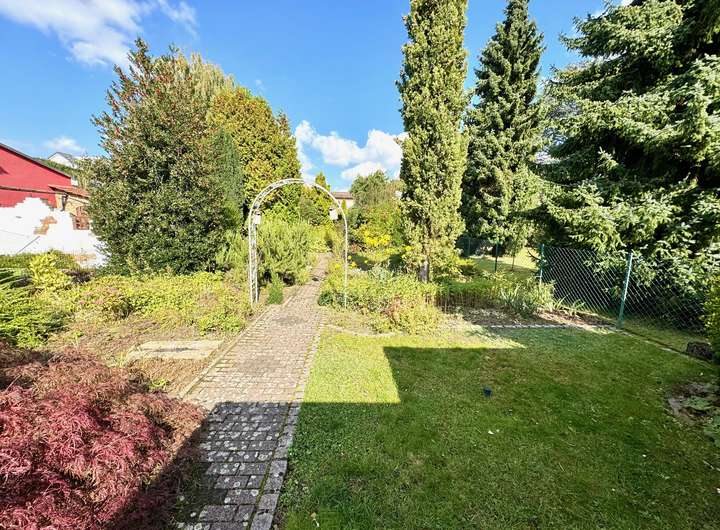 Der weitläufige Garten ist eine grüne Oase mit vielen Gestaltungsmöglichkeiten – perfekt für Familien, Gartenliebhaber oder entspannte Sommerabende.