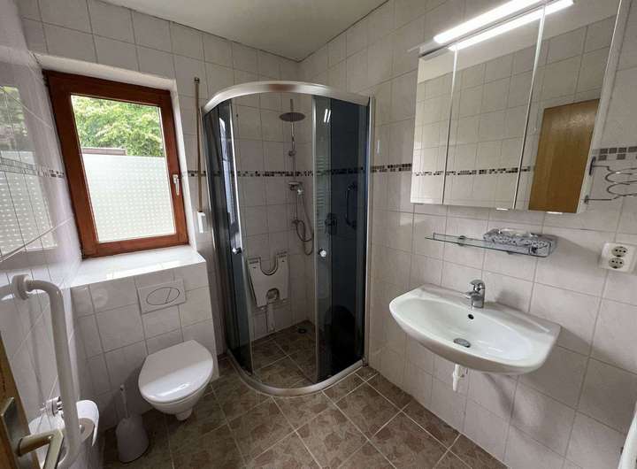 - Badezimmer im EG modernisiert mit WC, Waschtisch und Dusche.