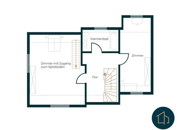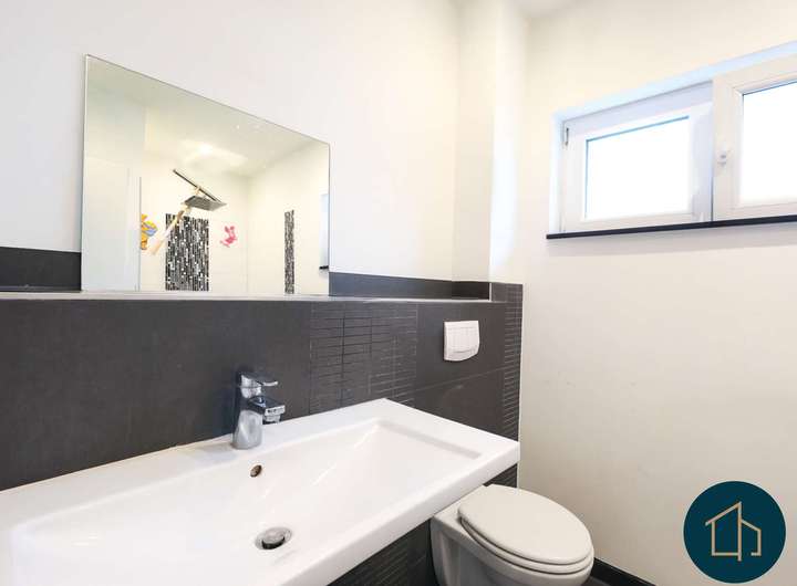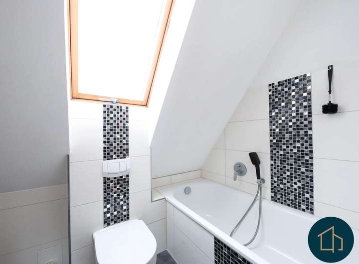 - Zwei Bäder (Duschbad unten, Wannenbad oben)