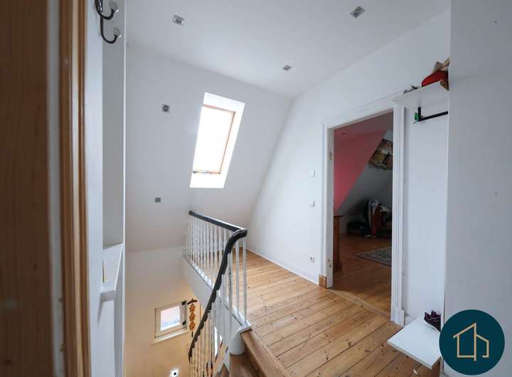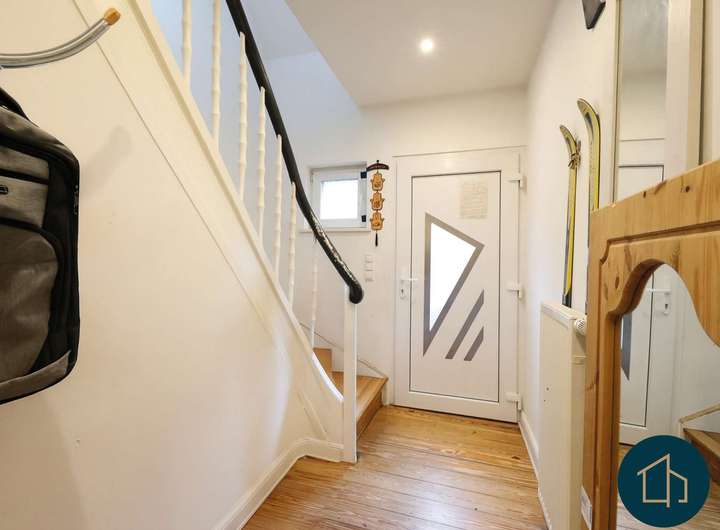 Mit rund 122 m² Wohnfläche auf zwei Etagen sowie einem beheizten Vollkeller bietet die Immobilie reichlich Platz für eine Familie oder Paare mit Raumbedarf. Das Haus steht auf einem großzügigen Grundstück von 1.049 m², wovon ein hälftiger Miteigentumsanteil zugeordnet ist.