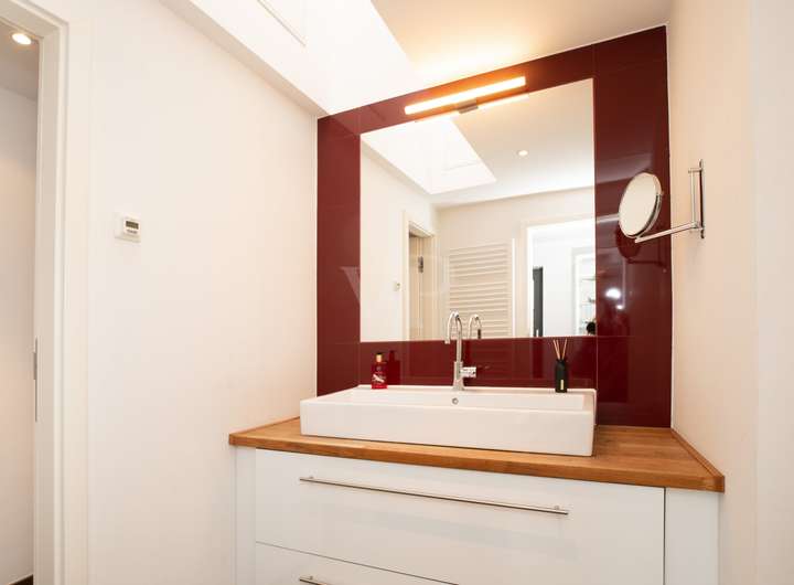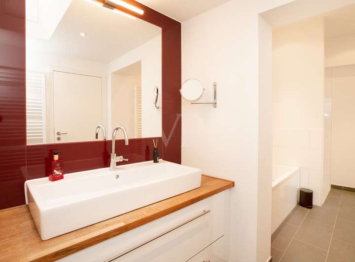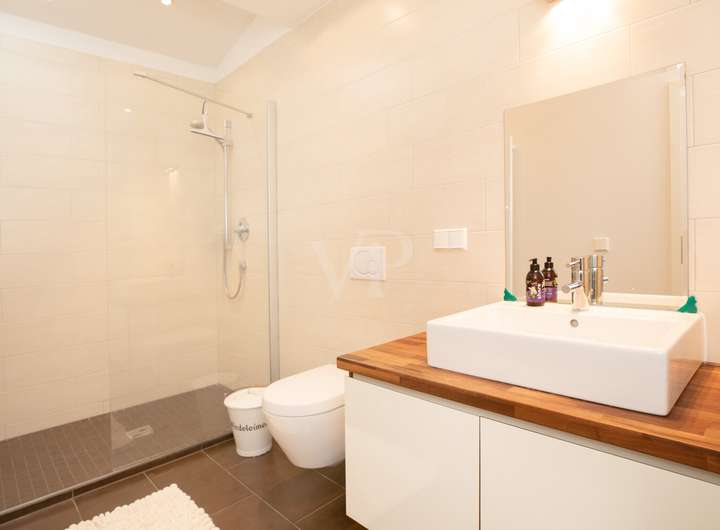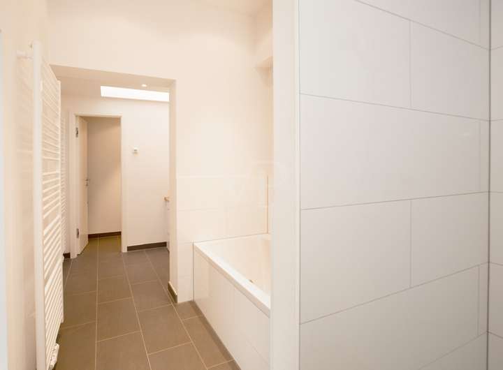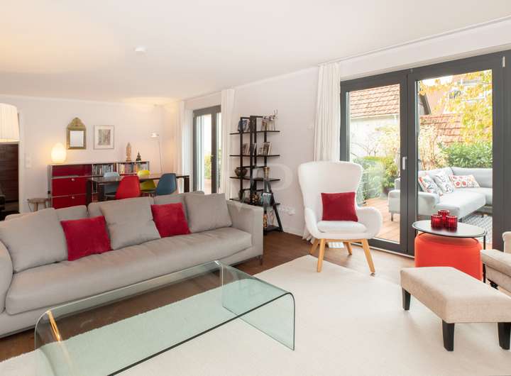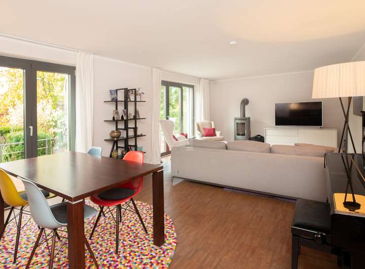 •Fußböden mit großflächigen Fliesen und hochwertigen Holzdielen